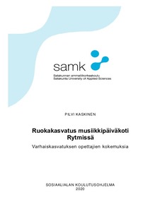 Tämän opinnäytetyön tavoitteena oli selvittää varhaiskasvatuksen opettajien haastattelujen avulla, millaista ruokakasvatusta musiikkipäiväkoti Rytmissä toteutetaan, sekä miten Rytmin varhaiskasvatuksen opettajat kehittäisivät sitä. Opinnäytetyön teoriaosuus selvittää ruokakasvatuksen laadun tärkeyttä päiväkodissa, sekä sitä miten ruokakasvatus tukee lasten tervettä ruokasuhdetta ja ruokatottumuksia.