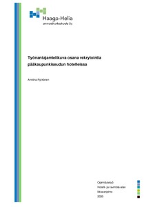 Opinnäytetyön tarkoituksena on löytää asioita, jotka korostuvat pääkaupunkiseudun hotellien työnantajamielikuvan rakentamisessa rekrytoinneissa. Tutkimuksessa selvitetään, mitä asioita hotellit pitävät tärkeinä työnantajamielikuvan kannalta, ja miten hotellit ovat kehittäneet työnantajamielikuvaansa rekrytoinneissaan. Työssä tutkitaan myös työnantajamielikuvan merkityksellisyyttä hotellien näkökulmasta. Vastausten pohjalta on tavoitteena antaa kehitysehdotuksia, joiden avulla hotellit voisivat parantaa työnantajamielikuvaansa rekrytoinneissaan.