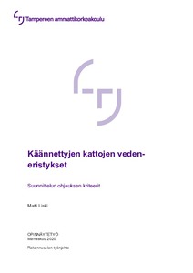 Tämä opinnäytetyö on tehty Peabille, joka on yksi Pohjoismaiden suurimmista rakennusyrityksistä. Työn tarkoitus on antaa suunnittelijoille ja tekijöille tietoa käännettyjen kattojen vedeneristyksestä sekä kertoa, mitä asioita on otettava huomioon suunnittelussa ja laadunvarmistuksessa. Opinnäytetyön tuloksena on tehty tarkistuslista, jota noudattamalla voidaan varmistaa käännettyjen kattojen vedeneristyksen laatu ja toimivuus. Opinnäytetyössä esitellään kriteerit suunnittelun ohjaukselle käännetyn katon vedeneristämisen osalta.