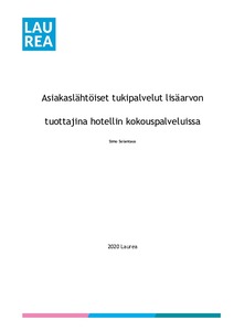 Kokous- ja tapahtumatoimialalla yrityksen kyky erottautua kilpailijoista on olennainen osa kannattavaa liiketoimintaa. Erottautuminen tapahtuu luomalla asiakkaalle lisäarvoa. Kokouspalveluissa lisäarvoa luodaan tukipalveluiden hallinnalla. Tämän opinnäytetyön tavoitteena on esittää keinot luoda lisäarvoa hotellin kokouspalveluihin asiakaslähtöisten tukipalveluiden avulla. Opinnäytetyön tuotos on tarkoitus ottaa käyttöön Suomessa avautuvassa hotellissa, joka toimii opinnäytetyön toimeksiantajana.