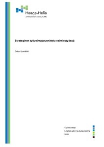Opinnäytetyön tavoitteena oli tutkia yrityksen X johdon näkökulmaa strategiseen työvoimasuunnitteluun sen hyödyntämiseen sekä laajuuteen esimiestyössä ja millaisia liiketoimintavaikutuksia tällä on. Tämä opinnäytetyö tehtiin toimeksiantona yritykselle x. Tutkimustuloksia hyödynnetään yrityksessä käynnissä olevissa strategisen työvoimasuunnittelun keskittyvissä hankkeissa.
