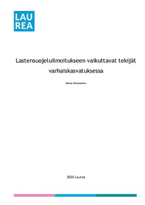 Tämän tutkimuksellisen opinnäytetyön tavoitteena oli löytää lastensuojeluilmoitukseen vaikuttavia tekijöitä varhaiskasvatuksessa. Varhaiskasvatuksen työntekijän kokiessa lapsesta huolen tunteen, alkaa hän tarkastelemaan havaintojaan laajemmin ja tuo huolen tunteen esille työyhteisössä. Lakiin perustuvan velvoitteen vahvistamiseksi varhaiskasvatuksessa työntekijöillä on toimintaohjeet lastensuojeluilmoituksen tekemiseen. Opinnäytetyön tarkoituksena on löytää tekijöitä, jotka mahdollisesti vaikuttavat lastensuojeluilmoituksen tekemiseen ennen sen toteuttamisesta. Kerätyllä aineistolla voidaan kehittää lastensuojeluilmoituksen teon toimintaohjeita varhaiskasvatuksessa. Opinnäytetyö tehtiin yhteistyössä Hyvinkään varhaiskasvatuksen kanssa.