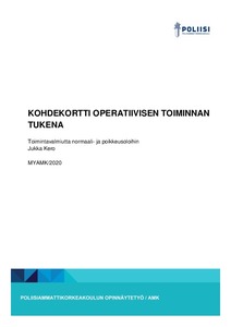 Tämän toiminnallisen opinnäytetyön avulla selvitän, mikä on kohdekortti, mitkä ovat kohdekortin laadulliset kriteerit, sekä miten ne liittyvät poliisin operatiiviseen varautumiseen normaali oloissa sekä yhteiskunnallisen kriisin aikana.