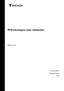 I detta examensarbete undersöks klädbutikernas nytta med att övergå från streckkoden till RFID teknologin (Radio Frequency Identification). RFID är en gammal teknik som fungerar genom att läsa radiovågor. På produkten sätts en så kallad RFID tagg som sedan kan läsas med en RFID läsare. Taggen kan vara antingen aktiv eller passiv. Den aktiva taggen har sin egen strömkälla medan den passiva inte har en egen strömkälla. Detta betyder att den passiva taggen måste vänta att en läsare skicka en signal till den. Genom att fästa RFID taggen på plaggen redan i fabriken har butikerna möjlighet att följa med hela kedjan var produkterna rör sig. Butikerna har bättre lagersaldo och bättre kontroll på vad som har mottagits in till butiken. Syftet med denna studie var att undersöka om klädbutiker kan göra besparingar ifall de övergår till RFID teknologin. RFID teknologins för och nackdelar lyfts fram i den teoretiska referensramen och jämförs med resultatet i den empiriska studien. Metoden i studien är kvalitativ och består av strukturerade intervjuer. Studiens resultat baserar sig endast till de butiker som valdes till detta arbete. Enligt resultaten har dessa butiker gjort stora tidsbesparingar efter att de övergått till RFID teknologin vilket har lett till att personalen har mera tid för kundservice. En av de största fördelarna som kom fram var att inventeringen blev 98% pålitligare. Saldon blev mera pålitliga och personalen kan i realtid veta vad de har i sina butiker och lager. Detta i sin del leder till fördelen att reaprodukterna minskar då butikerna får mera sålt till normalpris.