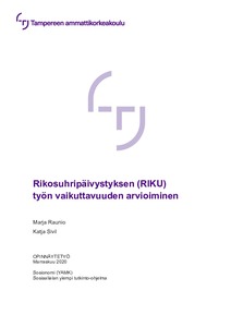 Opinnäytetyön tarkoituksena oli selvittää, kuinka vaikuttavuutta tutkitaan tämän päivän RIKUn toimintaympäristössä. Tavoitteena oli kehittää vaikuttavuutta arvioiva kyselylomake organisaation käyttöön. Lomakkeen avulla voidaan selvittää, mitkä RIKUssa käytössä olevista työtavoista ovat merkityksellisiä asiakkaan rikosasiasta selviytymisen kannalta.