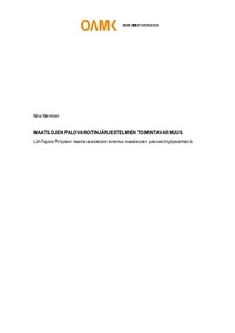 Opinnäytetyöni tavoitteena oli selvittää maatilojen palovaroitinjärjestelmien toimintavarmuus haastattelemalla LähiTapiola Pohjoisen maatilaasiakkaita, joilla oli käytössään Finanssiala ry:n hyväksymä maatalouden palovaroitinjärjestelmä, Elotec tai Icas. Tutkimuksen perustana on tarve selvittää, mikä on kyseisten laitteiden toimintavarmuus ja asiakkaiden käyttäjäkokemus ja saavutetaanko niillä sitä suojaa, jota laitteelta haetaan. Lisäksi työssä mietittiin myös, voisivatko markkinoiden muut palovaroitinjärjestelmät erilaisesta toimintaperiaatteestaan huolimatta toimia maatiloilla. Opinnäytetyössä käydään yleisellä tasolla läpi maatalouden paloturvallisuutta ja sen lainsäädäntöä. Opinnäytetyön toimeksiantajana toimi LähiTapiola Pohjoinen.