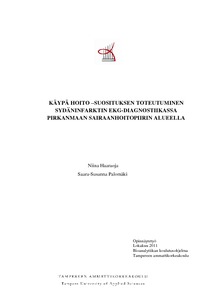 Opinnäytetyön tarkoituksena oli kartoittaa miten Sydäninfarktin diagnostiikan Käypä hoito -suositus on otettu käyttöön rintakipupotilaan EKG –rekisteröinnin yhteydessä. Laboratoriokeskuksessa on käytössä Käypä hoito –suosituksen pohjalta tehty työohje 15-kytkentäisen EKG-rekisteröinnin suorittamisesta, minkä tulisi olla käytössä Pirkanmaan sairaanhoitopiirin alueella. Opinnäytetyön tavoitteena oli tuottaa tietoa siitä, miten Sydäninfarktin diagnostiikan Käypä hoito -suositus on käytössä, kun rekisteröidään EKG rintakipuiselta potilaalta Pirkanmaan sairaanhoitopiirin alueella. Työn aiheen saimme Laboratoriokeskuksesta laboratoriohoitaja Sirpa Hämäläiseltä.