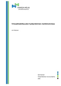 Tämä syksyllä 2020 tehty opinnäytetyö on tutkimus aiheesta virtuaalitodellisuuden hyödyntäminen markkinoinnissa. Tutkimuksen avulla haluttiin selvittää, miten virtuaalitodellisuutta voidaan hyödyntää markkinoinnissa, ketkä sitä hyödyntävät ja miltä virtuaalitodellisuuden tulevaisuus markkinoinnissa näyttää. Vastauksia tutkimuskysymyksiin haettiin kirja- ja internetlähteiden sekä kyselytutkimuksen avulla.