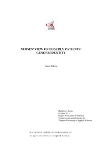 Tämän opinnäytetyön tavoitteena oli tutkia vanhusten sukupuoli-identiteetin ilmenemistä ja tukemista hoitajien näkemänä ja kokemana. Tarkoituksena on myös herättää keskustelua aiheesta sekä selvittää hoitajien koulutustarvetta ja -halukkuutta aiheeseen liittyen. Pyrkimyksenä on myös, että tätä tutkielmaa voidaan käyttää hyväksi hoitotyötä kehitettäessä, erityisesti seksuaaliterveyden näkökannalta.