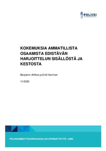 Tämän tutkimuksen tarkoitus on selvittää, kuinka Poliisiammattikorkeakoulun ammatillista osaamista edistävä harjoittelu valmentaa poliisiopiskelijoita tulevaan työelämään. Tutkimuksessamme käydään myös lävitse Poliisiammattikorkeakoulun ammatillista osaamista edistävän harjoittelun rakennetta, ammattikorkeakouluihin liittyvää lainsäädäntöä sekä ammatillista osaamista edistävän harjoittelun osaamistavoitteita.