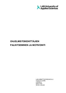 Työn tavoitteena oli selvittää mikä motivoi ohjelmistokehittäjiä. Tavoitteena oli saada selville mitkä asiat heitä innostavat työssä, millaisia palkitsemiskeinoja he arvostavat sekä millä tavoin työnantaja voisi tukea heidän työmotivaatiotaan. Opinnäytetyön on tarkoitus toimia pohjana palkitsemisjärjestelmän rakentamiselle eräässä ohjelmistoalan start-up-yrityksessä.