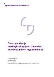Tämä opinnäytetyö suoritettiin osana innovatiivisen yrittäjyyden mahdollistajat työryhmää, Tampereen ammattikorkeakoulun Y-kampuksen toimeksiantona Teoriaosuus pohjautui psykologisesta omistajuudesta, merkityksellisyydestä sekä niiden elementeistä saatavilla olevaan tietoon. Esimerkkinä tutkimuksessa käytettiin myyntityötä- ja myyntiympäristöä.