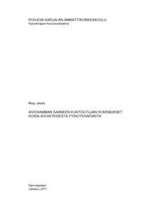 Opinnäytetyön tarkoituksena oli tutkia aivovamman saaneen kuntoutujan ja fysioterapeutin kokemuksia koira-avusteisesta fysioterapiasta. Opinnäytetyössä selvitettiin, miten kuntoutuja ja fysioterapeutti kokivat koiran käytön terapian aikana ja eroaako koira-avusteinen fysioterapia ilman koiraa toteutuvasta fysioterapiasta ja mitä tulee huomioida, kun terapiassa on mukana eläin.
