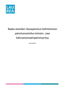 Tämän tutkimuksellisen kehittämistyön tavoitteena oli kehittää B2B ympäristössä toimivan kahviautomaattipalveluyrityksen raaka-aineiden tilauspalvelua palvelemaan paremmin yritysasiakkaita kehittämällä uusi palvelukonsepti nykyisen soittopalvelun rinnalle. Kehittämistyö toteutettiin kahviautomaattipalveluyrityksen työntekijöiden, yrityksen asiakkaiden sekä sähköisen tilausjärjestelmän alustantarjoajan kontekstissa.