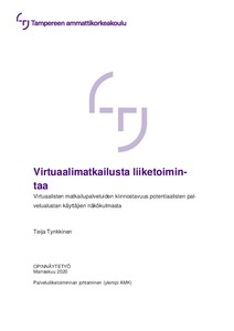 Opinnäytetyön tarkoituksena on tutkia virtuaalisten matkailupalveluiden ja elämysten kiinnostavuutta potentiaalisten käyttäjien ja palveluntuottajien näkökulmasta. Työn tavoitteena on selvittää, onko virtuaalisia matkailupalveluita ja elämyksiä välittävälle kaupalliselle alustalle kysyntää.