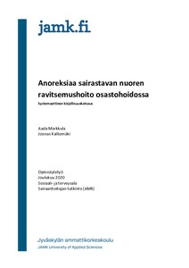Opinnäytetyön tarkoituksena on kerätä tietoa anoreksiaa sairastavan nuoren ravitsemushoidon sisällöstä osastohoidossa, ja selvittää, miten anoreksian ravitsemushoito tulisi toteuttaa käytännössä osasto-olosuhteissa näyttöön perustuvan tiedon mukaisesti. Opinnäytetyön tavoitteena oli tuottaa kirjallisuuskatsauksen avulla koottua, näyttöön perustuvaa tietoa anoreksian ravitsemushoidosta terveydenhuollon eri tahoille, joissa hoidetaan nuoria, anoreksiaa sairastavia potilaita. Opinnäytetyö toteutettiin systemaattisena kirjallisuuskatsauksena. Aineisto kerättiin suomenkielisistä ja englanninkielisistä tietokannoista. Opinnäytetyöhön valikoitui kuusi tutkimusta, joista kolme on englanninkielistä ja kolme suomenkielistä. Tutkimukset ovat vuosilta 2010 - 2020. Aineisto analysoitiin sisällönanalyysillä.