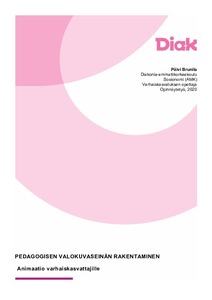 Opinnäytetyön toinen osa on animaatio varhaiskasvattajien käyttöön. Animaation toteutumiseksi haettiin tietoa animaation tuottamisesta ja tehtiin käsikirjoitus. Animaatiosta kuvattiin useita versioita, joita katseltiin moneen kertaa. Näin lopullisesta versiosta saatiin sujuva ja visuaalisesti mielekäs. Lopullisen editoinnin teki asiantuntija.