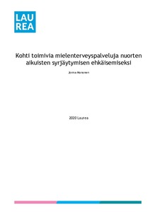 Opinnäytetyön tarkoituksena tutkittiin integroivan kirjallisuuskatsauksen avulla sitä, minkälaisilla mielenterveyspalveluilla on saatu hyviä tuloksia nuorten aikuisten syrjäytymisen ehkäisyssä. Opinnäytetyössä perehdyttiin aiheesta tehtyihin tutkimuksiin tarkoituksena tuottaa käsitys mielenterveyspalveluiden vaikuttavuudesta tematiikkaan liittyen. Opinnäytetyön kehittämisosiossa laadittiin saatujen tulosten pohjalta kehittämissuunnitelma siitä, millaisilla mielenterveystyöpalveluilla ja toimenpiteillä voidaan ehkäistä ja vähentää nuorten aikuisten syrjäytymistä. Teoreettinen viitekehys muodostui nuorten syrjäytymisen ja mielenterveyden määritelmistä, mielenterveyteen vaikuttavista tekijöistä sekä mielenterveyshäiriöiden ennaltaehkäisystä- ja hoitomuodoista.