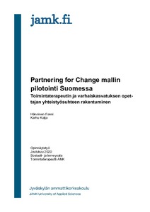 Tavoitteena on tutkia Partnering for Change mallin mahdollisuuksia suomalaisessa toimintaympäristössä. Tutkimuksessa kerätään tietoa Partnering for Change mallin mukaisen yhteistyösuhteen rakentamisesta, sekä prosessin etenemisestä suoma- laisessa varhaiskasvatuksessa. Kenttätutkimuksen menetelmiä käyttäen kerättiin havaintotietoa, jonka pohjalta pyrittiin vastaamaan tutkimustehtäviin.