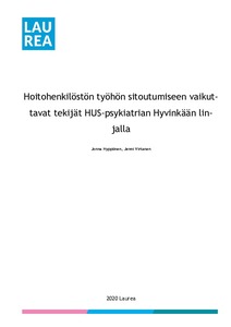 Hoitohenkilöstön työhön sitoutumiseen vaikuttavat tekijät HUS-psykiatrian Hyvinkään linjalla