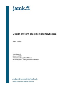 Opinnäytetyö toteutettiin soveltavana tutkimuksena, ja sen teoriaosuus käsittelee suunnitte-lujärjestelmää käsitteenä sekä sen käyttöä ketteriä menetelmiä käyttävän ohjelmistokehitys-tiimin työkaluna. Teoriaosuudessa selvitetään, miten koko projektiryhmä, ei pelkästään suunnittelijat, hyötyy design systemistä.