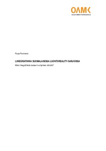 Tutkielman tietoperusta rakentuu liikegrafiikkaa, graafista suunnittelua, television brändäystä, tositelevisiota ja luontoarvoja käsittelevistä kirjalähteistä ja internet-artikkeleista. Tutkielman analyysiosassa aineistona toimii kolme suomalaista luontoreality-sarjaa: Eränkävijät, Metsähaaste ja Peltsin Lappi. Analyysissä erittelen ohjelmien brändejä ja kohdeyleisöjä, minkä jälkeen tarkastelen niiden liikegrafiikkaa aineiston lähiluvun kautta. Tutkimuksen tuloksena arvioin, mitä liikegrafiikan keinoja käytetään tukemaan ohjelmien brändiä ja suuntausta kohdeyleisölle.