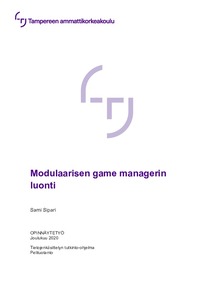 Tutkielma keskittyi Unity3D-pelimoottorille toteutetun modulaarisen game managerin kehityksen vaiheisiin. Game manager on pelin sisäisen tilan hallintaan käytettävä työkalu. Sitä voisi kuvailla pelin aivoiksi. Tutkielman tavoitteena oli selvittää modulaarisen pelikokonaisuuden luomiseen vaadittavat toimenpiteet. Modulaarisuuden päätehtävä on mahdollistaa game managerin käyttö mahdollisimman monessa erilaisessa projektissa. Tarkoituksena oli kehittää havaintojen pohjalta game manager, joka tukee pelin modulaarisuutta sekä pelin perustaan vaadittavat moduulit, ja mahdollistaa moduulien helppo lisääminen ja poistaminen. Haasteena tutkimuksessa oli toteuttaa tuote geneerisellä tavalla, joka mahdollistaisi sen käyttämisen useissa projekteissa vähäisillä muutoksilla. Game managerille ei ole olemassa standardisoitua mallia, joten tutkielmassa määritellään lähteiden pohjalta tuotteeseen sopiva versio game managerista.
