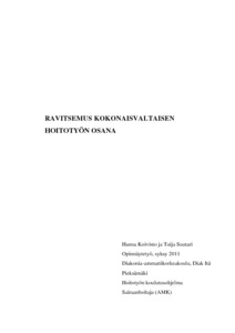 Koivisto Hanna & Suutari Tuija. Ravitsemus kokonaisvaltaisen hoitotyön osana. Pieksämäki, syksy 2011. 50 sivua, 5 liitettä.