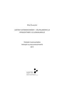 Raportin teoriaosassa on käsitelty lasten ylipainoa ja lihavuutta ja niiden syitä, seura-uksia ja ehkäisymenetelmiä. Lisäksi teoriaosassa on käsitelty ravitsemusta ja terve-ysviestintää, sekä aikaisempia lasten ylipainon ja lihavuuden ehkäisemiseen liittyviä hankkeita. Teoriaosuuden jälkeen on selvitetty projektin suunnittelu ja toteutus sekä arviointi ja pohdinta. Loppuosassa on liitteenä toteuttamani lapsille suunnattu opas-lehtinen terveellisistä välipaloista, sekä projektiin liittyvät muut liitteet.
