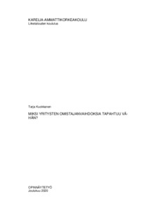 Keskeisimpänä kysymyksenä tässä työssä on ollut selvittää seikkoja, miksi yrityskaup-poja jää toteutumatta. Tutkimusta varten haastateltiin omistajanvaihdoksen asiantunti-jaa, jolla on usean vuoden kokemus yrityskaupoista. Omistajanvaihdoksista tehtiin ky-sely, joka lähetettiin toimeksiantajan määrittelemille, pohjoiskarjalaisille yrityksille. Kyse-lyllä selvitettiin yrittäjien tietämystä yrityskaupoista sekä heidän kiinnostustaan yritys-kauppoja kohtaan.