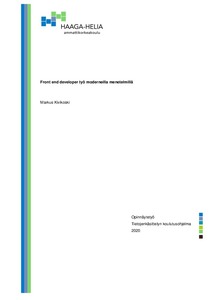 Tämän päiväkirjamuotoisen opinnäytetyön tarkoitus on seurata opiskelijan arkea, kehittymistä ja pohdintaa front-end kehittäjänä. Opinnäytetyö sisältää aikavälillä 7.9.2020 - 16.11.2020 tehdyt päiväkirjamerkinnät, viikkoanalyysejasekä loppupäätelmät ja pohdinnat seurantajakson ajalta. Opiskelija toimii yrityksen ensimmäisenä in-house front-end developerina ja on vastuussa yrityksen tarjoaman portaalipalvelun kehittämisestä sekä suunnittelusta yhdessä pääsuunnittelijan kanssa. Seurantajakson aikana tapahtui paljon kehitystä erityisesti itsenäisen työskentelyn saralla. Uudessa työpaikassa aloittaminen vaatii aina paljon aikaa uuteen projektiin orientoitumiseen, joten suurin osa seurantajaksosta kului uusien työtapojen ja ympäristöjen oppimiseen. Opittavaa on vielä paljon, sillä työtehtävät seurantajakson aikana olivat hyvin paljon toisiaan muistuttavia ja keskittyivät hyvin rajattuun osaan sovelluksen suunnitelluista toiminnallisuuksista