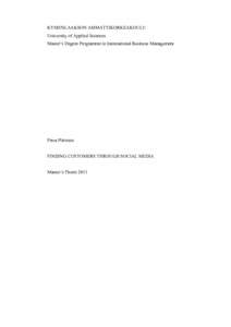 Tämä on sosiaalisen median hyödyntämiseen keskittyvä markkinatutkimus, minkä toimeksiantajana toimi Kuortaneen urheiluopisto. Tutkimus toteutettiin casetutkimuksena keskittyen Kuortaneen urheiluopiston valmennuskeskukseen ja sen yhteen asiakasryhmään, ulkomaalaisiin keihäänheittäjiin ja valmentajiin.
