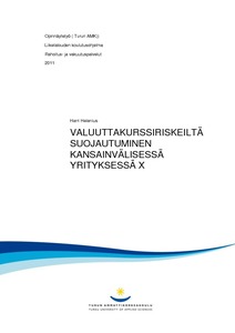 Opinnäytetyön toimeksiantaja on iso kansainvälinen Yritys X, jonka tavoitteena on olla oman alansa johtaja maailmassa. Tutkimuksen tavoite on selvittää, miten kansainvälisessä Yrityksessä X varaudutaan valuuttariskiin ja miten valuuttariskiltä suojaudutaan. Tutkimuksessa pyritään tuomaan esille miten tärkeä asia valuuttariski on isoille yrityksille, jotka joutuvat päivittäin tekemään liiketoimia ulkomaan valuutoissa.
