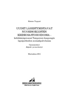 Uudet lähestymistavat nuorisoikäisten kriisiosastohoidossa – kehittämisprosessi Tampereen kaupungin lapsiperheiden sosiaalipalveluissa on kuvaus Lapsiperheiden sosiaalipalveluiden toteuttamasta kehittämistyöstä nuorisoikäisten kriisiosastohoidon suhteen. Työstä päävastuussa oli moniammatillinen asiantuntijaryhmä, joka koottiin kiireellisen sijoitusprosessin eri toimijoista. Työn tavoitteena oli saada aikaiseksi mahdollisimman konkreettisia ja käytännössä toteuttamiskelpoisia toimintalinjauksia, jotka olisivat samaan aikaan laadukkaita, kustannustehokkaita, vähentäisivät laitoshoidon vuorokausia ja lisäisivät yhteistyötä eri toimijoiden välille Tampereen kaupungin lapsiperheiden sosiaalipalveluissa.Kehittämistyössä hyödynnettiin tutkimuksellisena elementtinä Delfoi-menetelmää, jossa asiantuntija-paneelille tehtiin kolme sähköistä kyselykierrosta. Jokaisen kierroksen jälkeen vastaukset analysoitiin ja tiivistettiin niistä seuraavan kierroksen kysymykset. Tavoitteena oli saada muutostarpeista mahdollisimman yhtenevä näky koko asiantuntijaryhmälle. Työskentelyn kuluessa löydettiin aukko Tampereen kaupungin omasta lastensuojelun palvelutuotannosta. Sen paikkaamisen esitettiin uutta avohuollollista työmuotoa, jonne asiakkaat ohjautuvat lastensuojelutarpeen selvityksen jälkeen. Tämän lisäksi ehdotettiin muutoksia olemassa oleviin lastensuojelun palvelukokonaisuuksiin esimerkiksi perheohjausta lisäämällä osastojaksojen yhteydessä. Myös organisaation sisäiseen vuorovaikutukseen tehtiin useita kehittämisehdotuksia.