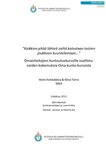 "Kaikkien pitää lähteä sieltä koloistaan toisten joukkoon kuuntelemaan" Omaishoitajien kuntoutuskurssille osallistuneiden kokemuksia Oma kunto-kurssista