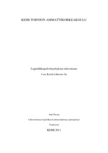 Pasoja, Antti. 2011. Logistiikkapalveluyrityksen tulevaisuus case: Kemin Liikenne Oy. Opinnäytetyö. Kemi-Tornion ammattikorkeakoulu. Kaupan ja kulttuurin toimiala. Kemi. Sivuja 20. 1 liite.