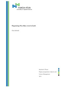 The implementation of the event of Lahti is based on personal experience on the posi-tion of the Event Organizer of Nice Run Lahti –event, during the years 2009-2010.