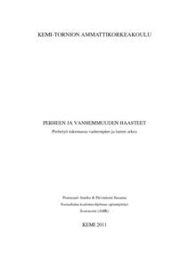 Otamme opinnäytetyössämme selvää mitkä asiat perheessä ja vanhemmuudessa johtavat perhe-työn tarpeeseen, miten vanhemmuutta tuetaan perhetyön avulla ja miten perhetyöllä vastataan lapsen tarpeisiin. Selvitimme haastattelemalla mitä mieltä vanhemmat ja perhetyöntekijät ovat Lapissa sijaitsevan kunnan perhetyöstä.