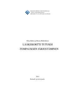 Tämän toiminnallisen opinnäytetyön tarkoituksena oli järjestää Lääkekortti tutuksi -tempaus. Projektin päätavoitteena oli informoida kansalaisia lääkekortista ja sen käytöstä sekä edistää näin kansalaisten omatoimista kirjaamista ja potilasturvallisuuden kehittämistä. Projektin tavoitteena oli myös tuottaa empiirisellä kyselyllä tietoa, jonka avulla voidaan kehittää lääkekortista tiedottamista. Tempauksen yhteistyötahoina toimivat Vaasan keskussairaala, Vaasan Kivihaan Citymarket ja Lääketietokeskus. Vaasan keskussairaalasta yhteistyökumppanina toimi SÄKE-hankkeen projektipäällikkö.