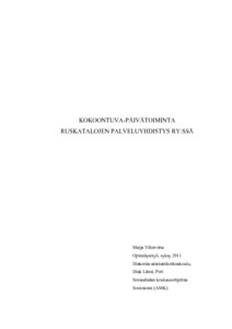 Vihervirta, Maija. Kokoontuva-päivätoiminta Ruskatalojen palveluyhdistys ry:ssä. Diak Länsi, Pori, syksy 2011. 46 s., 2 liitettä.