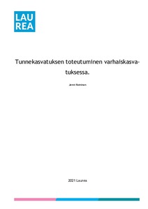 Opinnäytetyössä selvitettiin, miten tunnekasvatusta toteutetaan varhaiskasvatuksessa. Työ tutki tunnekasvatuksen toteutumisen ilmiötä. Työ hyödyttää varhaiskasvattajia kehittämään tunnekasvatuksen toteuttamista. Tutkielmassa toteutettiin kysely Facebook-ryhmissä, joissa oli varhaiskasvattajia. Tutkielman tulokset tullaan julkaisemaan vastaajille, jotka jakoivat sähköpostiosoitteensa, kun työ on hyväksytty. Julkaisulla on tarkoitus kehittää työelämää. Tutkielma on luonteeltaan laadullinen ja tutkii ilmiötä tunnekasvatuksen toteutumiseen varhaiskasvatuksessa. Vastauksia analysoitiin aiheperusteisella sisällönanalyysillä. Kysymykset jaettiin kahteen pääteemaan. Pääteemat olivat tunnekasvatuksen suunnitelmallinen toteutuminen ja kasvattajan mielipide tunnekasvatuksesta. Opinnäytetyön kyselyn tuloksissa selvisi, että tunnekasvatusta toteutettiin hyvin monipuolisesti sekä tunnekasvatuksen harjoittaminen vahaiskasvatuksessa koettiin erittäin tärkeäksi. Haasteeksi nousi kiire sekä koulutuksen puute tunnekasvatuksesta.