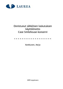 Opinnäytetyöni tarkoituksena oli kertoa, kuinka yrityksen tulisi ottaa käyttöön sähköinen myyntilaskutus, jotta käyttöönottoprojekti onnistuisi mahdollisimman hyvin yrityksessä. Opinnäytetyöni taustalla on Smilehouse-konsernin toimeksianto toteuttaa sähköisen myyntilaskutuksen käyttöönottoprojekti onnistuneesti. Onnistuneen verkkolaskutuksen käyttöönottoprojektin kuvaamisen lisäksi opinnäytetyöni päämääränä on patistaa yrityksiä siirtymään rohkeasti verkkolaskutukseen. Siten opinnäytetyöni tavoitteena on toimia myös oppaana sellaisille yrityksille, jotka suunnittelevat verkkolaskutuksen käyttöönottoa.