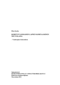 Opinnäytetyön tarkoituksena oli selvittää vanhempien näkökulmasta terveydenhoitajien valmiuksia kohdata kehitysvammainen lapsi neuvolassa. Tutkimuksessa selvitettiin myös, kuinka kehitysvammaisten lasten vanhempia huomioidaan neuvolassa. Tavoitteena oli saada uutta tietoa kehitysvammaisten lasten kohtaamisesta neuvolassa. Tietoa voitaisiin hyödyntää terveydenhoitajien ja muiden hoitoalan ammattilaisten koulutuksessa.