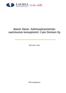 Opinnäytetyön tarkoituksena on konseptoida Onnisen Master Datan -hallintajärjestelmälle (engl. Master Data Management Solution, MDM Solution) asetetut vaatimukset. Pyrkimyksenä on kehittää Master Datan -hallintajärjestelmää entistä tehokkaammaksi ja hyödyllisemmäksi Onnisen liiketoimintaa tukevaksi ratkaisuksi. Opinnäytetyön pyrkimyksenä on myös pohtia, miten Onninen hyötyy uuden järjestelmän käyttöönotosta. Lisäksi opinnäytetyössä selvitettiin, miten konseptointia voidaan kehittää tulevaisuudessa.