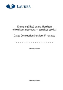 Energiansäästö osana Nordean yhteiskuntavastuuta — sanoista teoiksi. Case: Connection Services FI -osasto