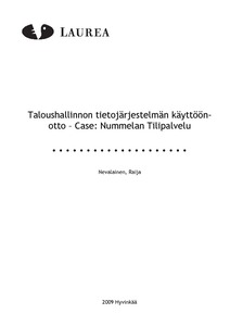 Taloushallinnon tietojärjestelmän käyttöönotto - Case: Nummelan Tilipalvelu