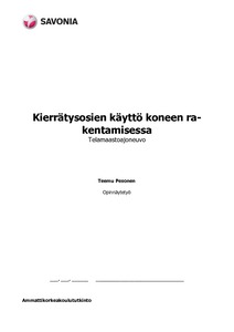 Työn tarkoituksena oli pohtia ja tarkastella kierrätysosien käyttöä koneen rakentamisessa.