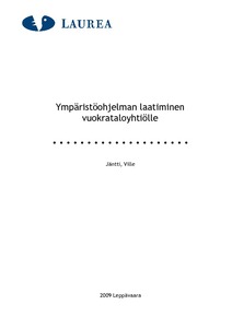 Tämän toiminnallisen opinnäytetyön tavoitteena oli ympäristöohjelman laatiminen Lahdessa toimivalle vuokrataloyhtiölle, Lahden Talot Oy:lle. Ympäristöohjelman laatimisen tarkoituksena oli yhtiön ympäristöasioiden hallinnan edistäminen. Ympäristöohjelmien käytön vaikutuksia yrityksissä on tutkittu jonkin verran ja useissa tapauksissa on todettu niiden edistäneen ympäristövaikutusten vähentämistä. Ympäristövaikutuksista ja niiden aiheuttajista on puolestaan runsaasti erilaisia tutkimuksia. Tämän opinnäytetyön raportissa esitellään ympäristöohjelman laatimisessa tehtyjä ratkaisuja pyrkien perustelemaan ne teorioiden ja laatimisprosessin aikana ilmenneiden seikkojen avulla. Aiempien tutkimusten lisäksi teoriapohjan muodostavat muun muassa kiinteistöalan sekä ympäristöjohtamisen kirjallisuus.