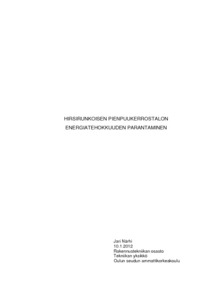 Opinnäytetyössä tarkasteltiin Oulun keskustassa sijaitsevan, vuonna 1930 valmistuneen kaksikerroksisen hirsirunkoisen pienpuukerrostalon energiankulutusta sekä pohdittiin eri mahdollisuuksia sen energiatehokkuuden parantamiseksi. Vanhojen rakennusten energiatehokkuuteen kannattaa tulevaisuudessa kiinnittää suurta huomiota, sillä niiden energiansäästöpotentiaali on huomattavan suuri ja pääosin vielä hyödyntämättä.
