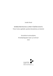 Opinnäytetyön ajatuksena oli, että nykyisessä hyvin teknologisoituneessa yhteiskunnassa lapsilla on aivan erityinen rooli. He ovat teknologisesti taitavia käyttäjiä, mutta tarvitsevat kuitenkin aikuisen apua pohtimaan kännykän käyttöön liittyviä uhkia tai mahdollisuuksia. Halusin tuoda esiin myös lasten omia ajatuksia aiheesta. Kännykkä päätyi edustamaan teknologiaa työssäni useammastakin syystä. Yhä nuoremmilla lapsilla on kännykkä ja se on usein myös hyvin henkilökohtaista teknologiaa, kulkeehan se aina mukanamme.